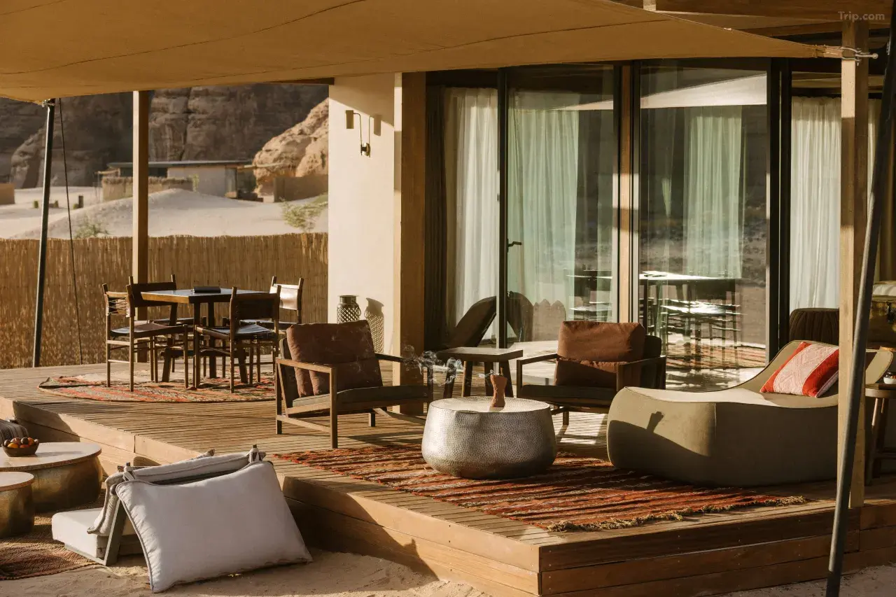 自然與設計: 帳篷式住宿融入沙漠景觀,設計簡約舒適,有私人露台可賞日出星空。